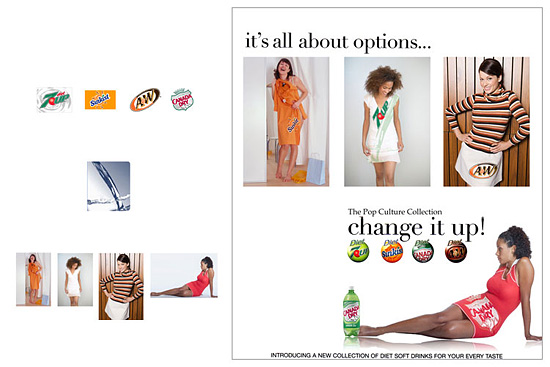 For one of their projects, students had to use what was learned in class to create an ad based on an existing ad they selected earlier in the quarter. For this project, students had to provide the original ad and all the original images used to create the final composition.